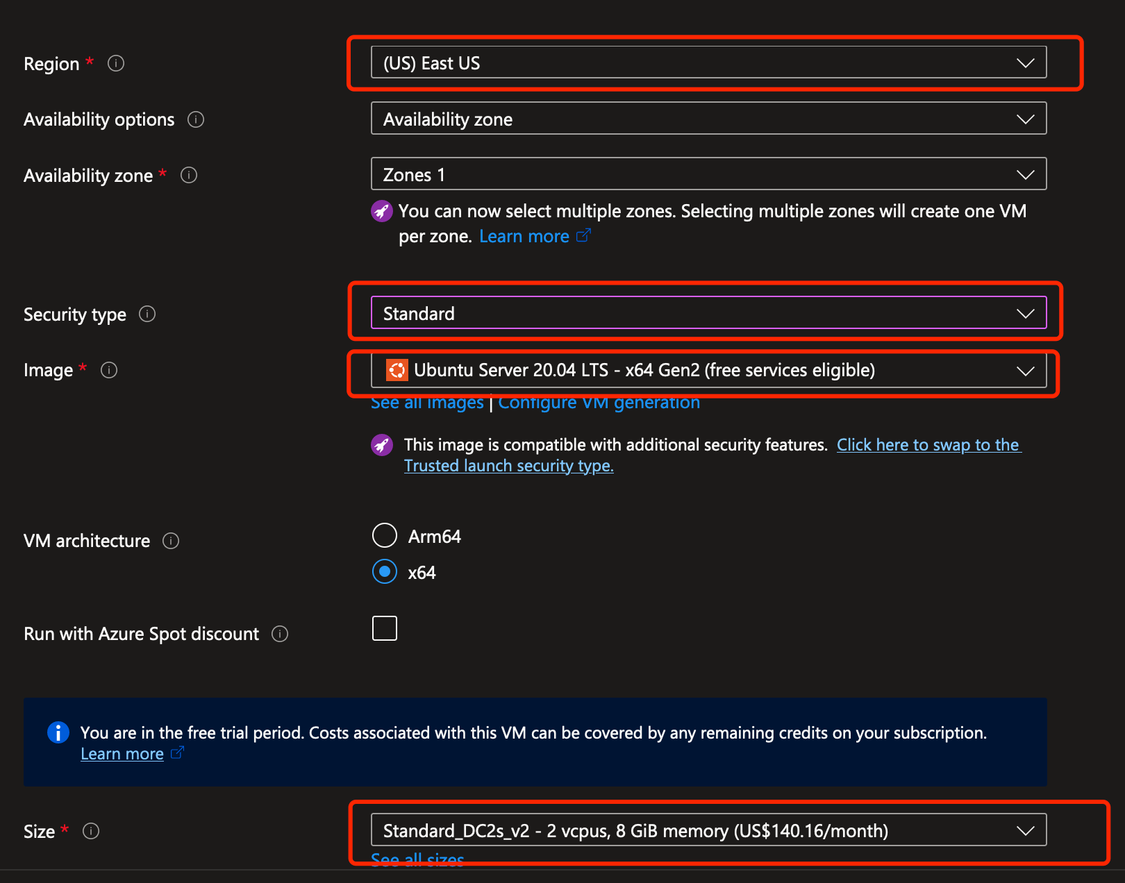 Select DC2s\_v2 size 选择DC2s\_v2大小